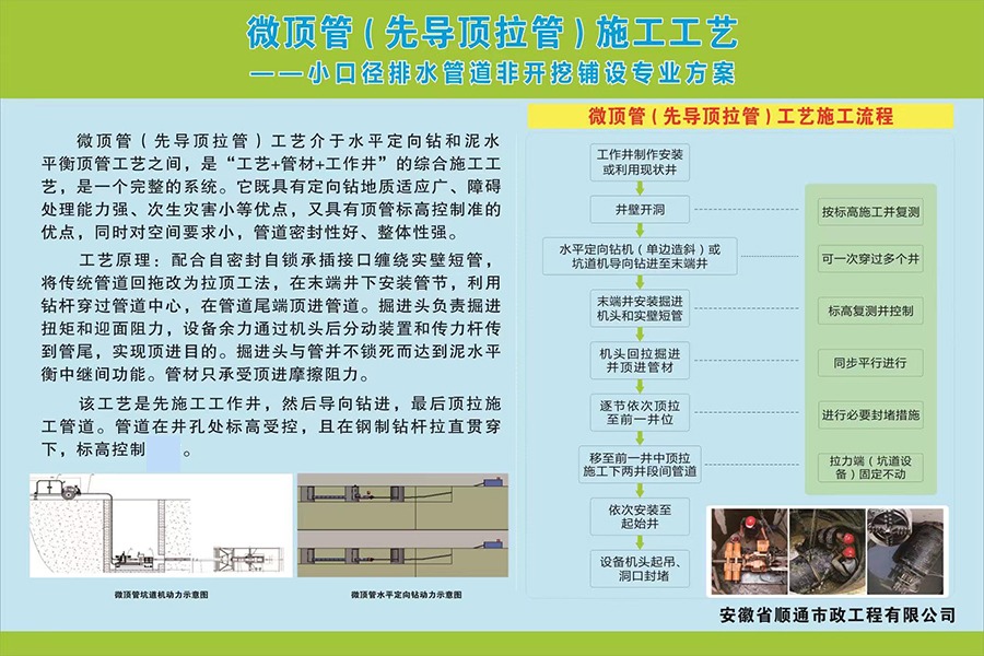 微頂法管道更新技術(shù)是采用微頂管機從原管道內(nèi)部導(dǎo)向至下一井室,利用專用破碎鉆頭將塌陷變形的管道進行切割破碎原有管道,然后用膨脹頭將其擴大將原有管道碎片擠入周國土體形成管孔,并同步將短管拉入新管道的原位同徑、擴徑置的施工工法。